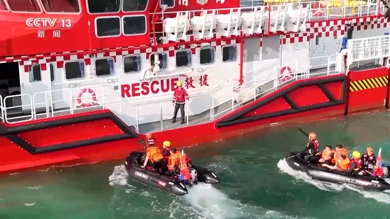 演练共设置建筑物坍塌、高空救援、危化品泄露、近岸水域演练等10个科目,采取“装备统筹调配、三地联合行动”救援模式展开。
