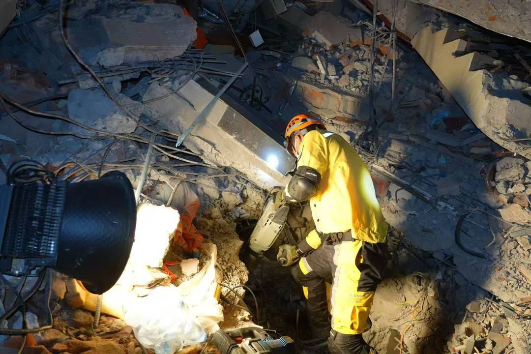 3月30日凌晨起,公羊救援队在第二处作业区开展破拆作业,根据侦搜研判,废墟里面还有2位以上的幸存者。目前救援作业正在有序推进,公羊救援队现场行动指挥官曲大帅表示,力争在中午高温到来前完成施救任务。