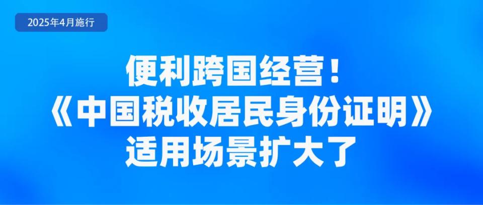 《关于〈中国税收居民身份证明〉有关事项的公告》(国家税务总局公告2025年第4号),为中国居民开展跨境经营提供保障和便利,自2025年4月1日起生效执行。《中国税收居民身份证明》是纳税人在境外使用的证明其中国税收居民身份的重要文件。《公告》优化的事项包括:拓展《税收居民证明》适用场景。申请人应当根据实际情况选择享受协定待遇或者非享受协定待遇的申请目的,后者覆盖了近年来纳税人在境外遇到的多个场景。实现全流程网上办。调整《税收居民证明》内容。压缩办理时限。如果主管税务机关能够自行判定税收居民身份,办理时限由现行的10个工作日缩短至7个工作日。