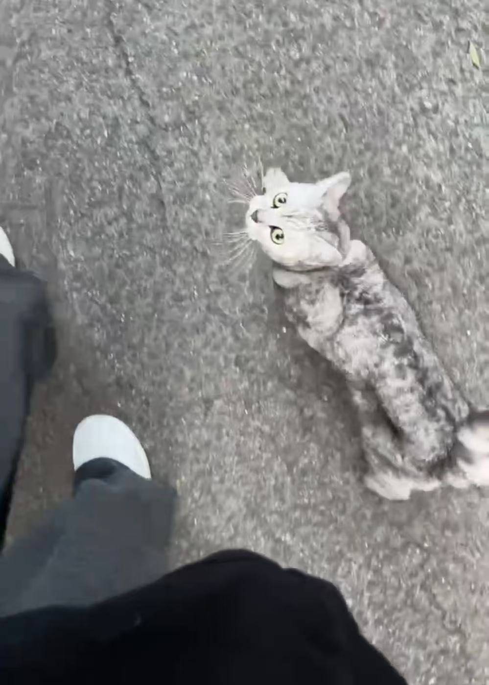 3月12日下午6时许,重庆九龙坡区的邓女士在小区楼下跑步锻炼时,一只黑白相间的英短猫引起了她的注意。这只小猫紧紧地跟着邓女士,无论她走到哪里,它都亦步亦趋,无辜的小眼神瞬间萌化了邓女士。