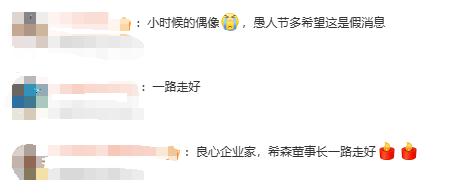 对此,网友们表示“小时候的偶像”“良心企业家,一路走好”……