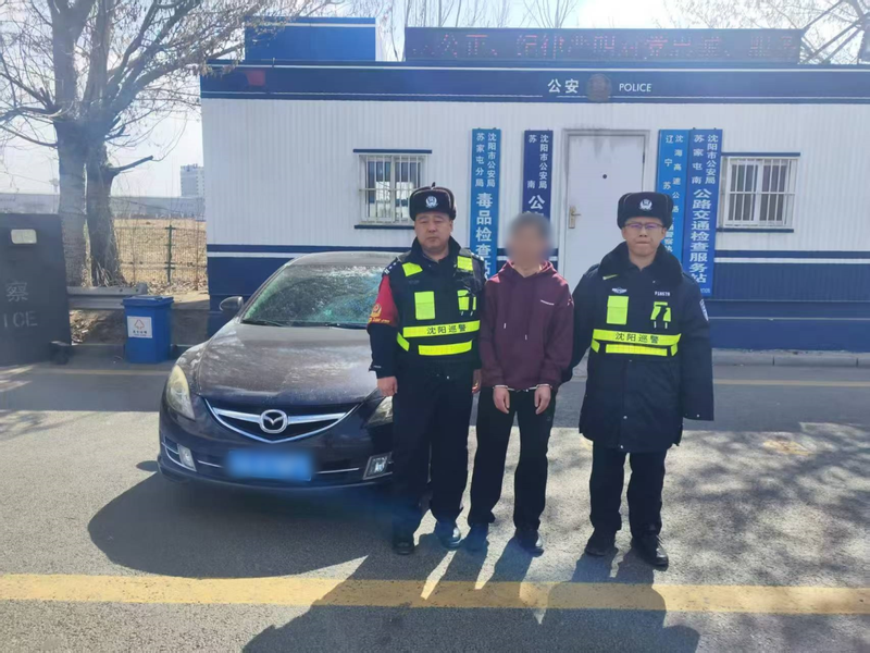 新京报记者了解到,3月29日,一辆黑色轿车途经沈阳市公安局苏家屯分局苏南检查站,辅警梁礼博查验司机证件时发现不对劲,趁司机低头间隙呼叫增援。民警史岩峰和值班站长张锴赶到现场,三人将男子当场控制。