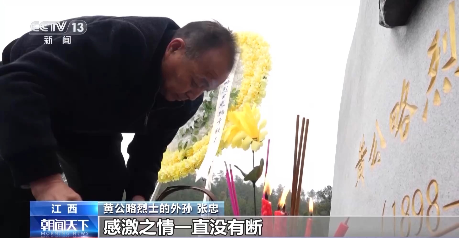 黄公略烈士的外孙 张忠:我们家对黄富财家的感激之情一直没有断。我们夫妇俩在去年的时候也给黄富财他们家送了一面锦旗,这就是我们当时心情的真实写照。很朴素,他们就是三代守墓,我们的感觉就是恩重如山。