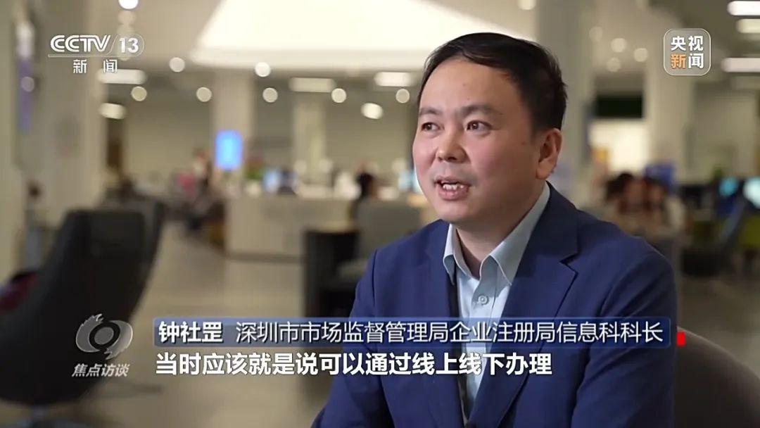 深圳市市场监督管理局企业注册局信息科科长钟社罡:2017年的时候,当时可以通过线上线下办理,线上主要是通过银行等数字证书机构颁发的合法的数字证书(U盾),这些数字证书可以用来进行电子签名,电子签名签署了相关文件以后提交申请,我们就可以进行审批了。不见面不用提供身份证给我们,身份验证这一块是在前期银行办理U盾的时候进行。