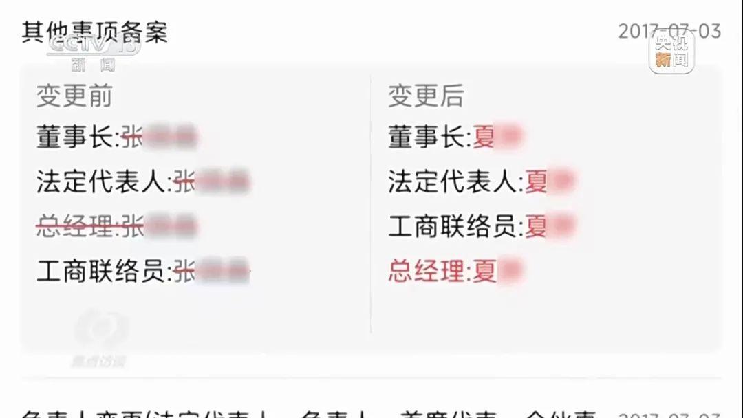 在银行蒙混过关后,不法分子就使用这个U盾,在当时深圳的企业注册系统中进行了公司法人代表的网络线上更名,把这家刚成立几个月的公司法人代表由张某某更名为了夏女士。