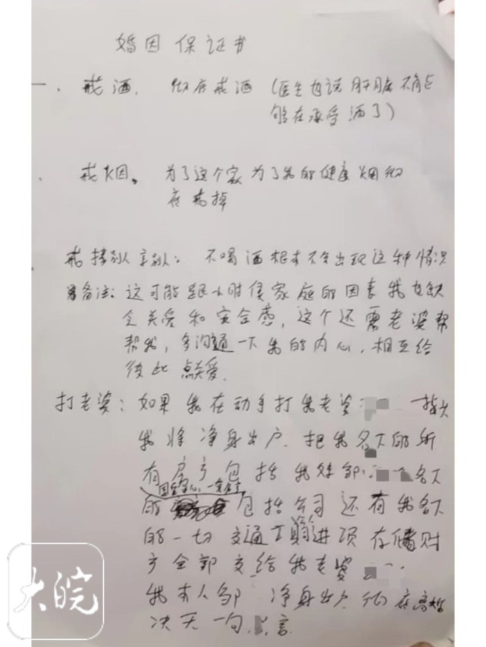 李萍还告诉记者,2022年10月,邹某为了让她回去,还给她发来了一份《婚姻保证书》,承诺不会再打她。记者看到,保证书中提到,将戒烟戒酒,并承诺“如果我在(再)动手打我老婆一指头,我将净身出户”,还提到“这两年我狂妄自大,不懂的(得)谦虚,把你的话当耳边风,把喝酒和压力都当成了自己犯下罪行的借口”。