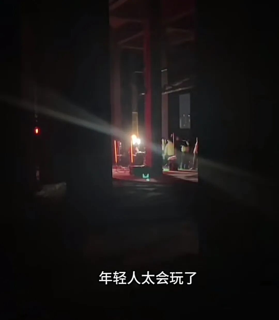 网友在漆黑的废弃厂房内发现有人蹦迪。网络截图。