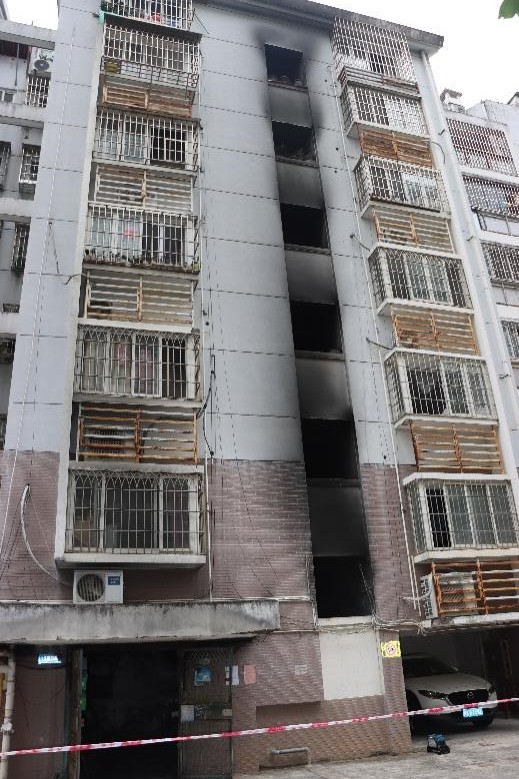 涉事建筑为西庄小区南区12号楼,地上7层(一层架空层、二至七层住宅),钢筋混凝土结构,建筑面积4242.9平方米,属多层住宅建筑。该楼共4个梯位,着火梯位为该楼2梯。