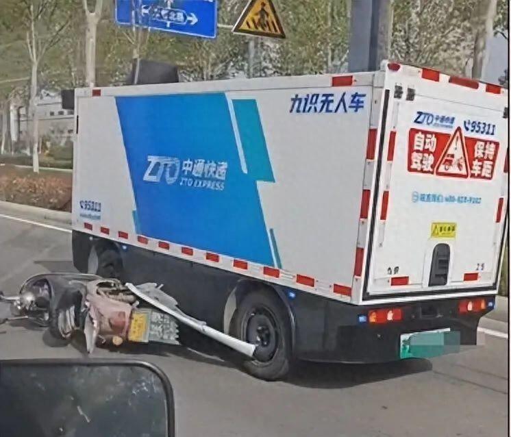 4月8日,陕西咸阳一网友发布视频称,中通快递“九识无人车”在送货途中发生异常——车辆左前轮卡住一辆倒地的电动车后未停止行驶,“浑然不知”继续拖行,引发公众对无人配送车安全性的关注。