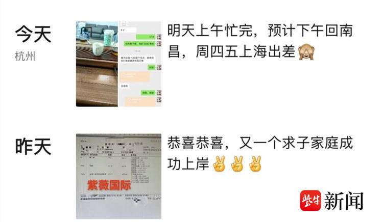 扬子晚报/紫牛新闻记者采访得知,该非法代孕机构的一名员工在朋友圈中发布了多张图片,其水印显示为“紫薇国际”,对外宣称来自南昌。记者多次联系这名员工,但未获回应。在现场的多种证据中,记者发现了涉及孕产的某医疗科技有限公司,但记者根据企查查登记的联系方式多次拨打电话,均无人接听。