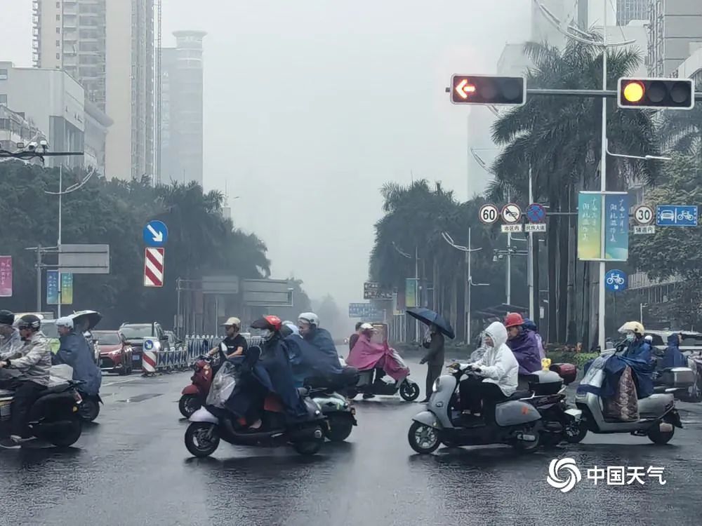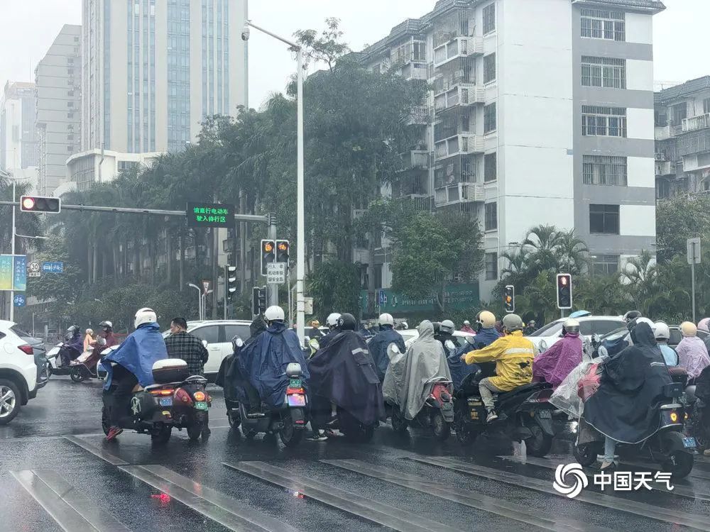 4月8日早晨南宁城区市民在雨雾中等候红灯。曹钰佳摄