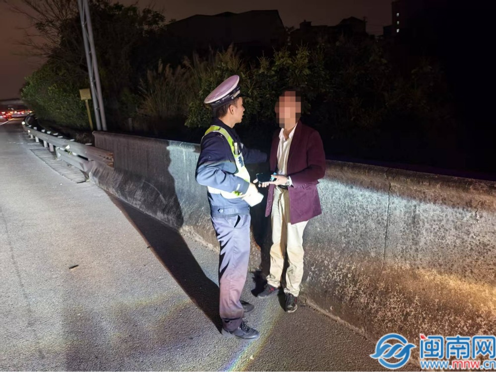 民警在省新路段发现滞留高速公路的郭某时,其仍处于醉酒状态,言语含糊不清。警方立即将其带至泉州南执法站妥善安置,并联系家属将其安全接回。