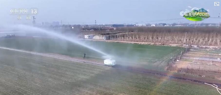 在沧州东光县高八里村的农田里,自走式智能喷灌机器人喷出的弧形水幕均匀地浇灌着麦田。与传统灌溉方式相比,它可以根据小麦长势需求,精准控制喷水量和灌溉范围。