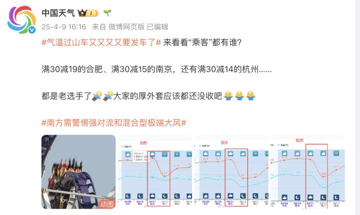 天气转折将出现在明天夜里,随着一股不俗的冷空气到场,我省会有一次大风、降温和降水过程。作为本轮“气温过山车”的“乘客”之一,杭州气温预计将“满30减14”。