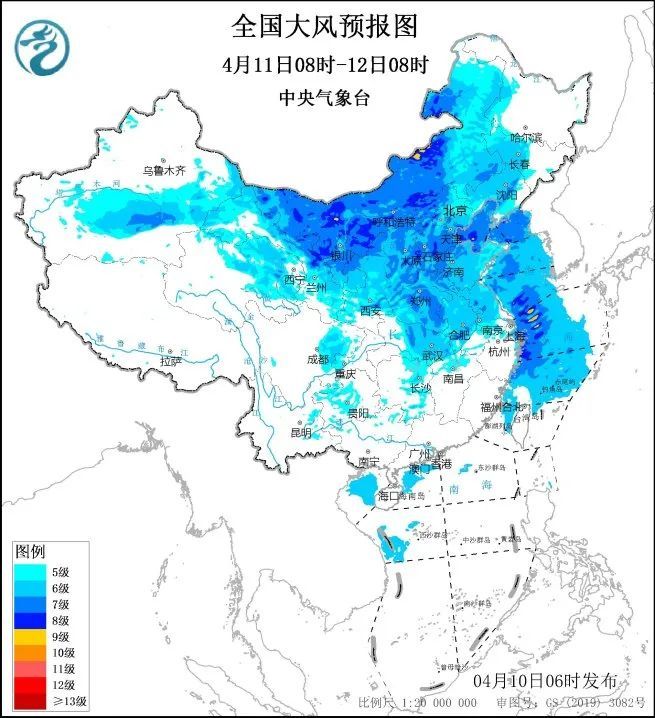 央广网北京4月10日消息(记者王迟)据中央气象台消息,明天(4月11日)起,较强冷空气将影响中东部大部地区,气温下降6℃至10℃,部分地区降幅可达12℃至16℃。降温的同时,华北等地大风显著,阵风8至10级,局地或可达11级以上。另外,内蒙古中东部、东北地区部分地区有中到大雪或雨夹雪,局地暴雪或大暴雪,南方降雨增强,将迎今年来最大范围强对流天气。