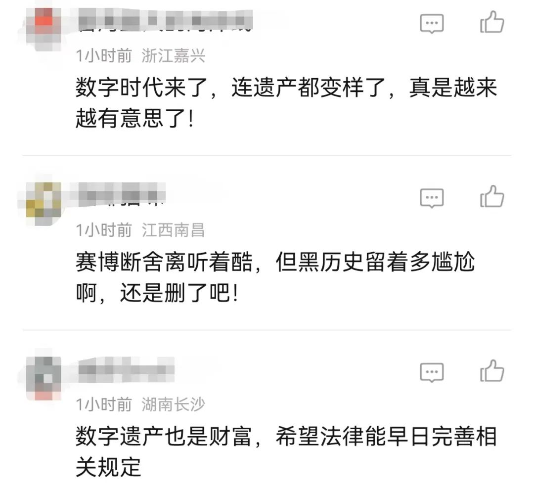 不少人在留言中谈到“人走了,黑历史还在,是属于当代年轻人的社死现场。”也有人开始认真思索这个问题,认为处理数字遗产很有必要,需提前做好规划。