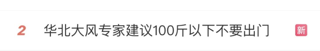 今日,话题#华北大风专家建议100斤以下不要出门#冲上热搜。