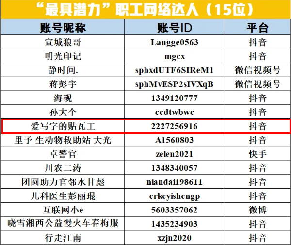 在抖音平台,“爱写字的贴瓦工”已经有35.7万粉丝,单条视频最高点赞数已达120万。2024年全国正能量职工网络达人账号征集活动榜单中,申作华入选“最具潜力”职工网络达人。