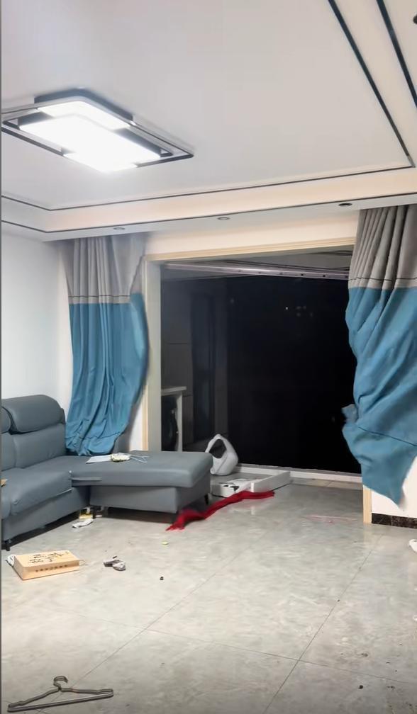 4月12日2点35分,郑州一位业主发视频称,“刚才一阵大风直接把窗户给刮掉了。”