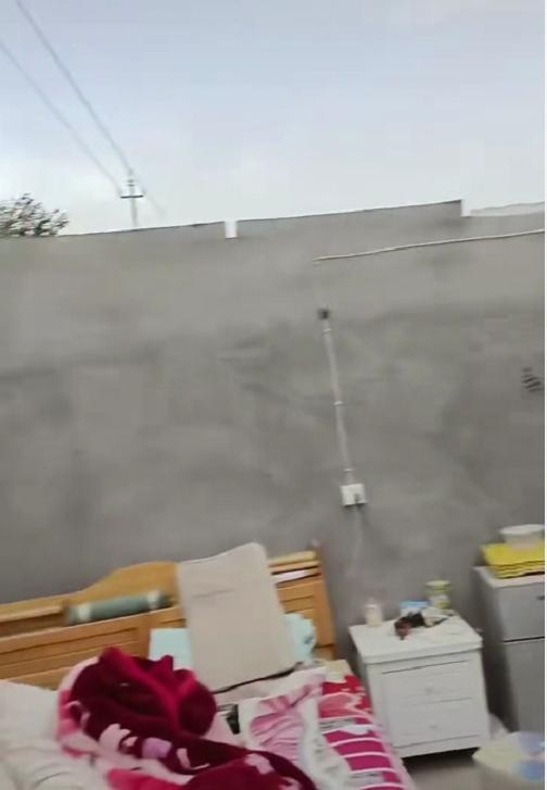 视频显示,卧室里有床和空调机等居家生活物品,但已看不到房顶,被网友称为“全景天窗”。有网友听口音称这户人家应该是河南洛阳偃师的。