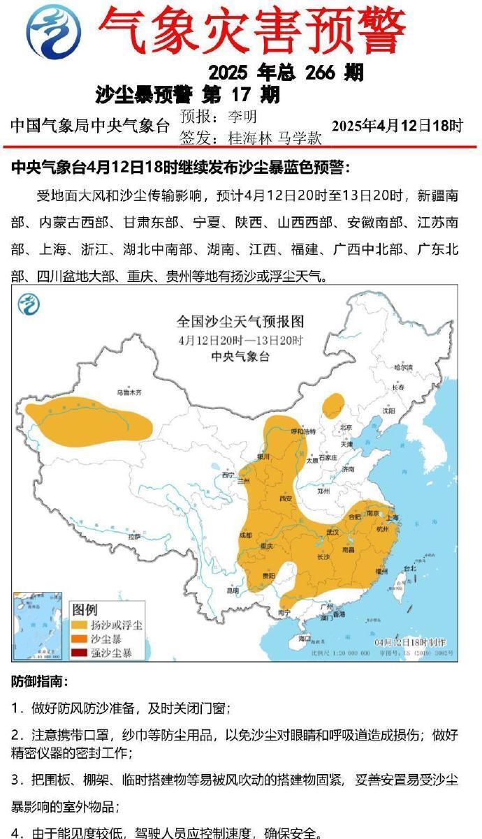中央气象台4月12日18时继续发布沙尘暴蓝色预警