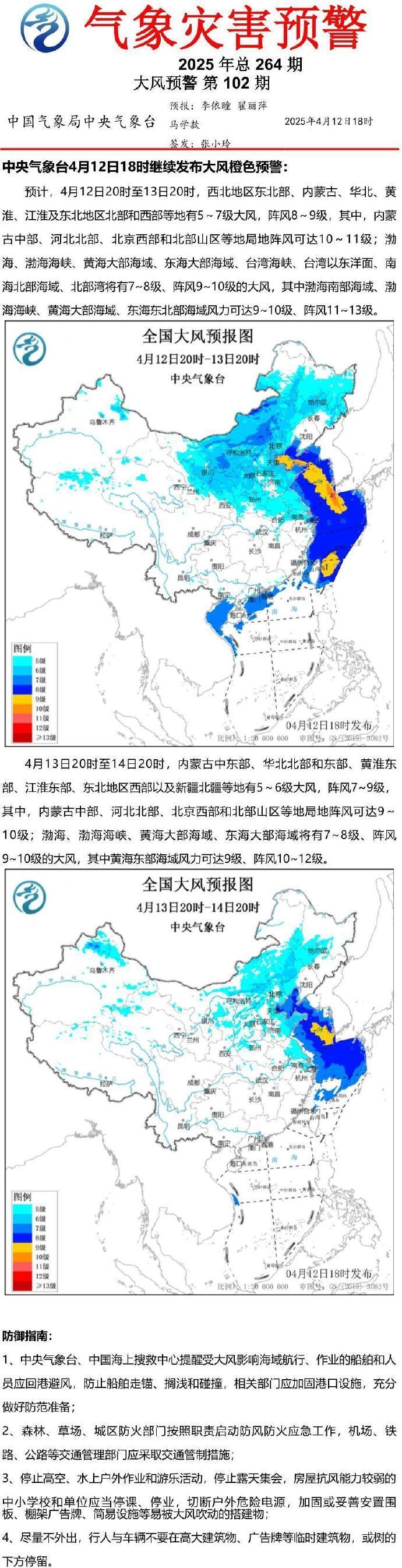 中央气象台4月12日18时继续发布大风橙色预警