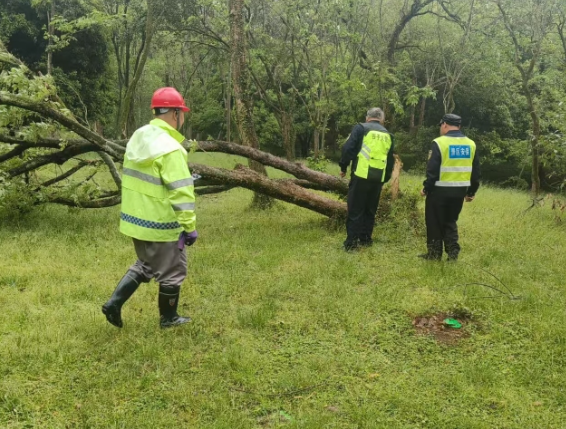 大风刮倒了西溪湿地公园访溪路上的一棵大树,倒下的大树堵了小半条路,友谊社区龙舟队的队员们正好路过,三辆车的人集体下车帮忙,和湿地安保人员合力清除大树,花了一个多小时恢复了道路畅通。