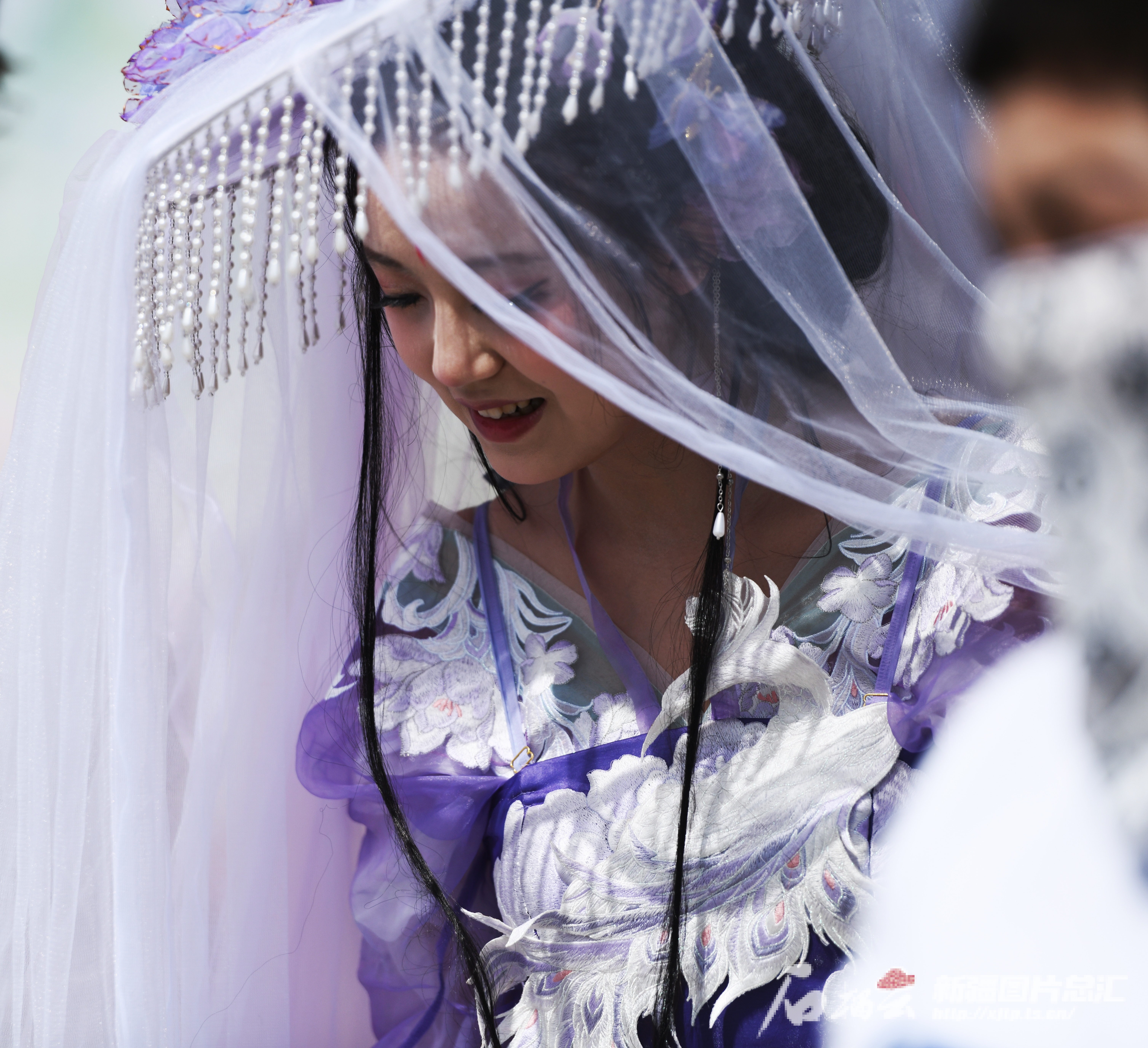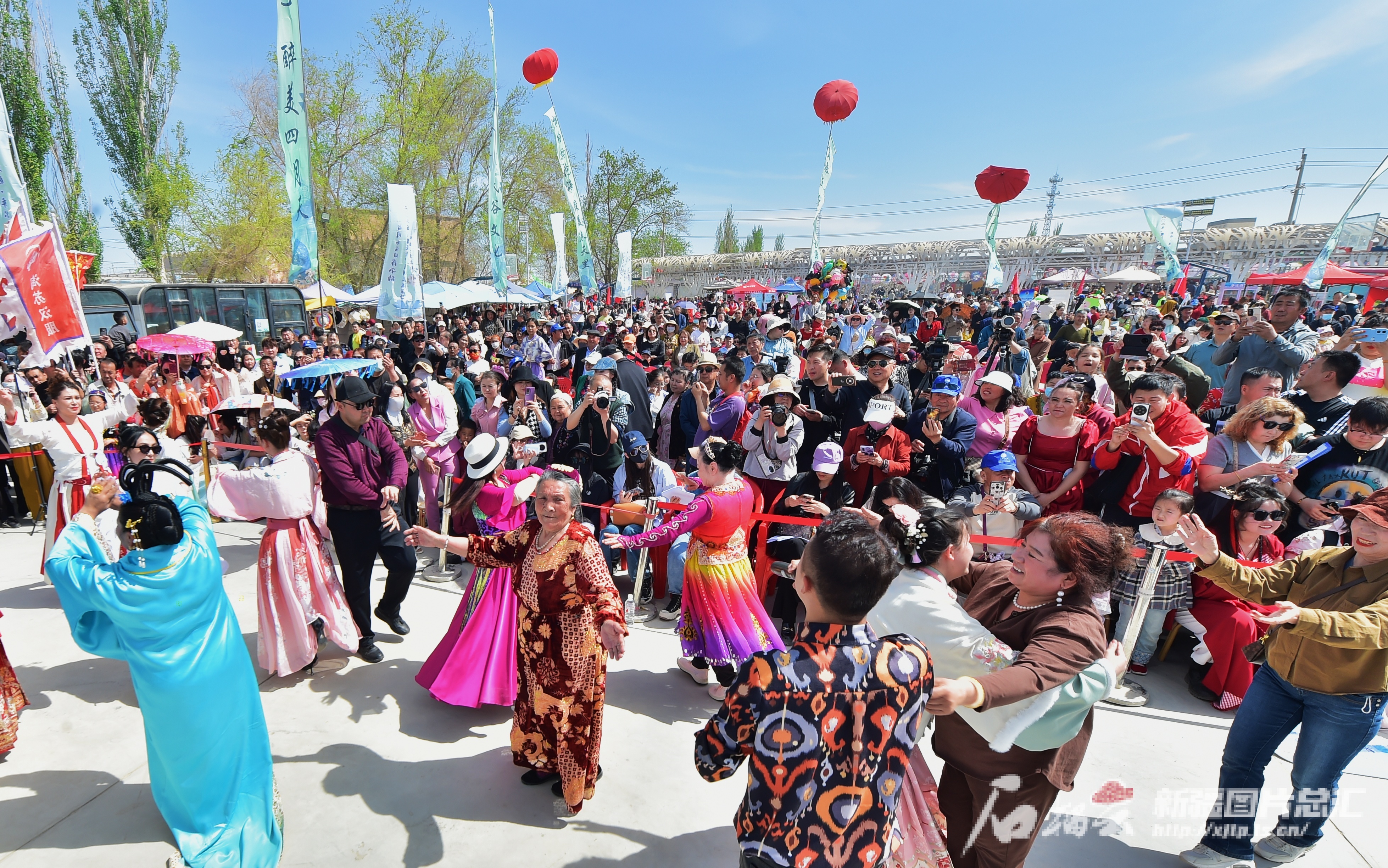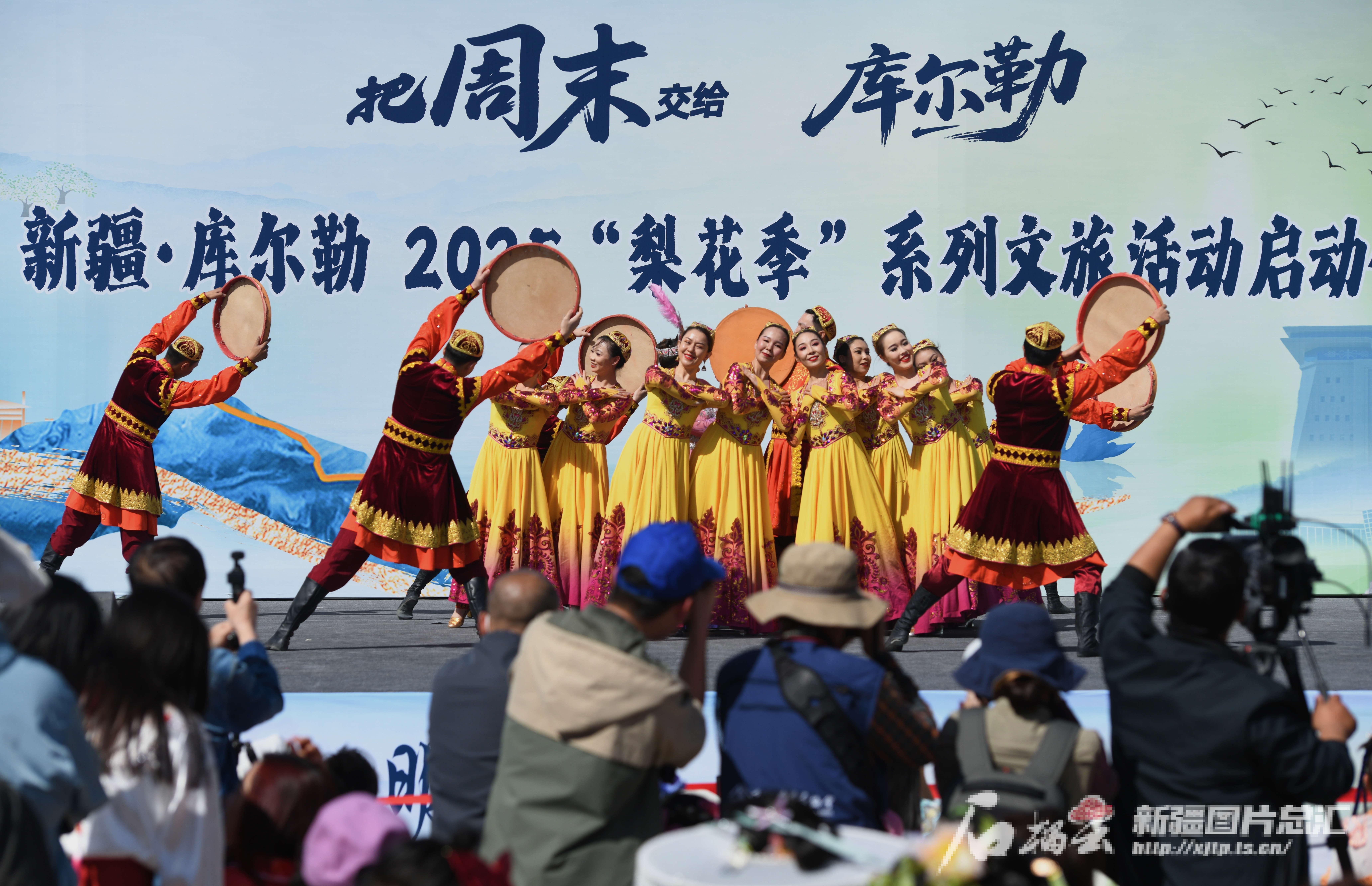 4月12日,演员在库尔勒2025“梨花季”系列文旅活动现场表演文艺节目。