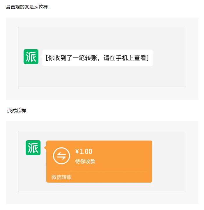 从此,上班不用低头拿手机,抬头在电脑上也能秒收来自单聊中的转账。