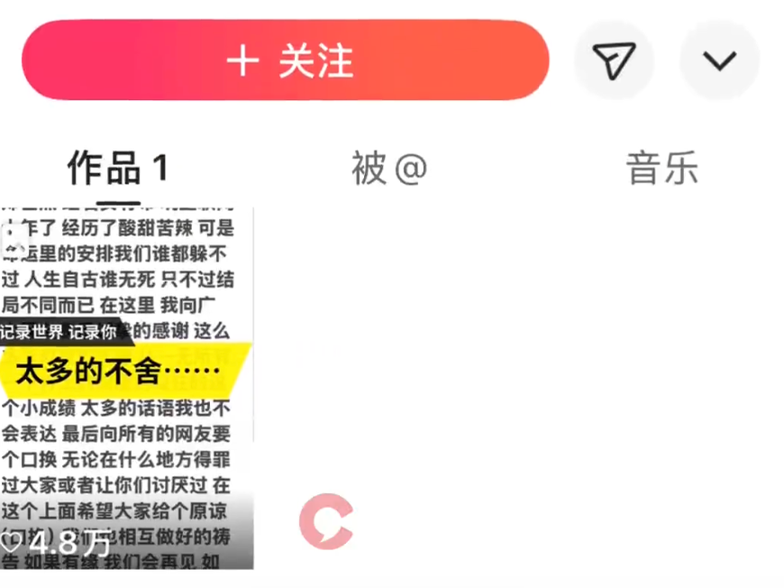 郑世杰全网粉丝近300万,去世后短视频平台的作品已经全部删除,只剩下他留给大家最后的告别信。