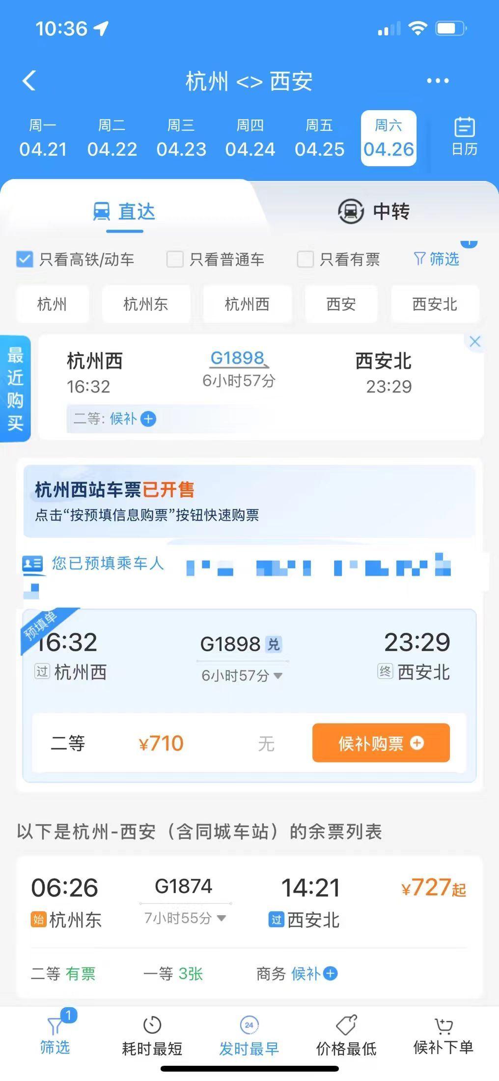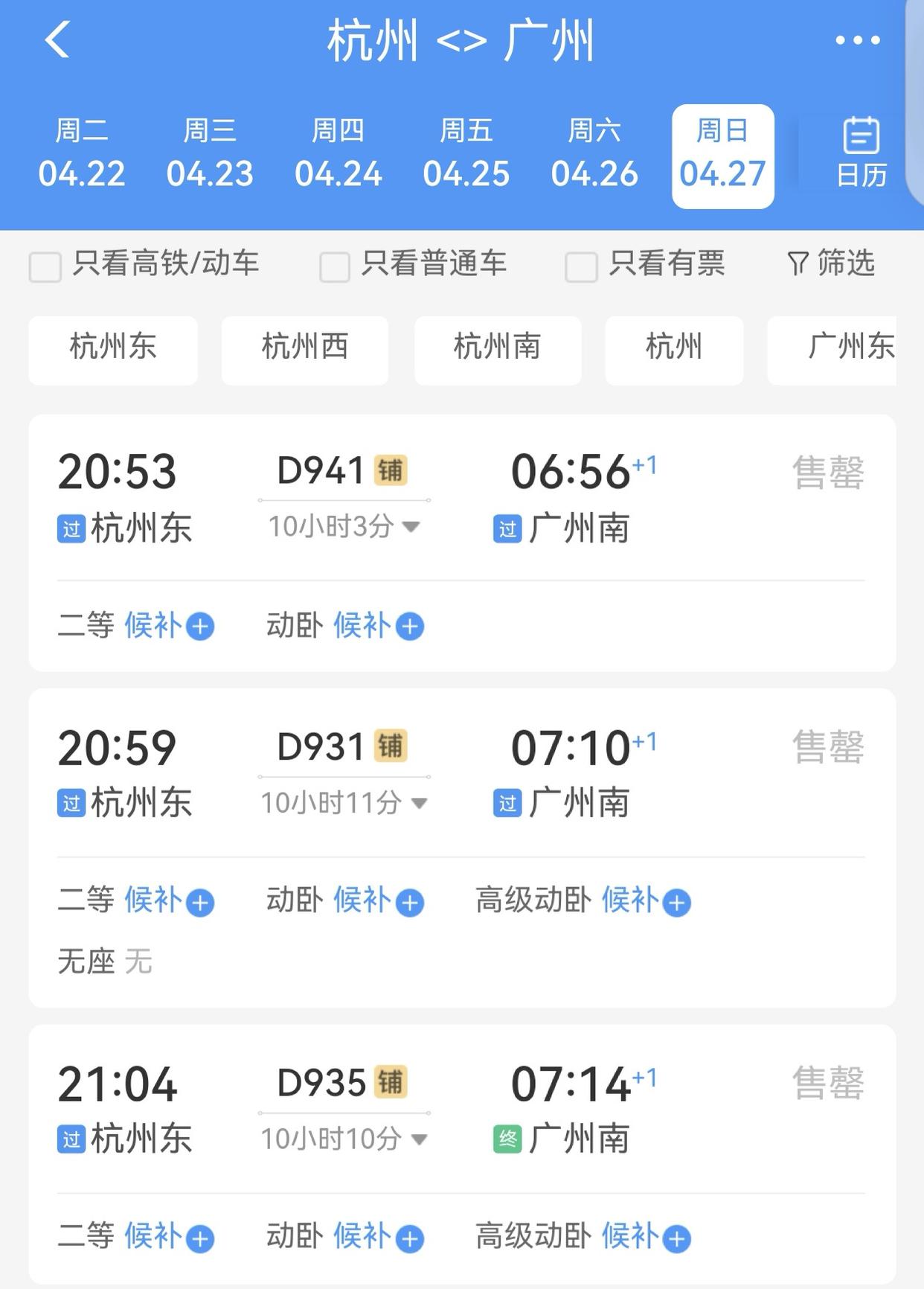 杭州出发哪些热门城市高铁票最为紧俏?潮新闻记者上12306查询了下,目前4月26日、27日杭州至北京、广州、南京、西安、厦门二等热门旅游城市的高铁二等座票基本售罄,一些普速车也只剩下少量硬座车票。