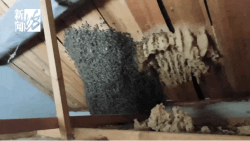 发现房梁顶部有一个巨型蜂窝