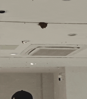 楼女士的邻居反映,先前就有一只蜂窝高挂楼栋外的空调管壁附近,物业随后用发泡胶将洞口封堵,罗女士家中蜜蜂突然涌入可能与此相关。