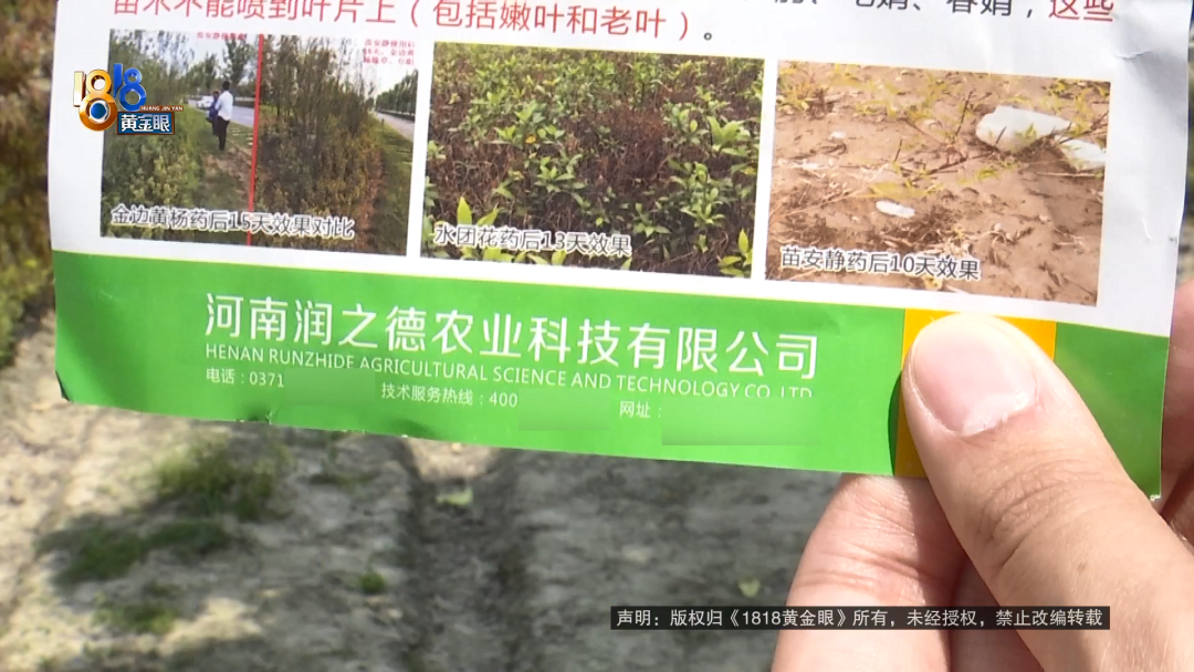 河南润之德农业科技有限公司 经理:去年天气干旱,苗子长得弱,是这个问题,跟打药没有一点关系,而且那个药在低温下是发挥不了作用的。