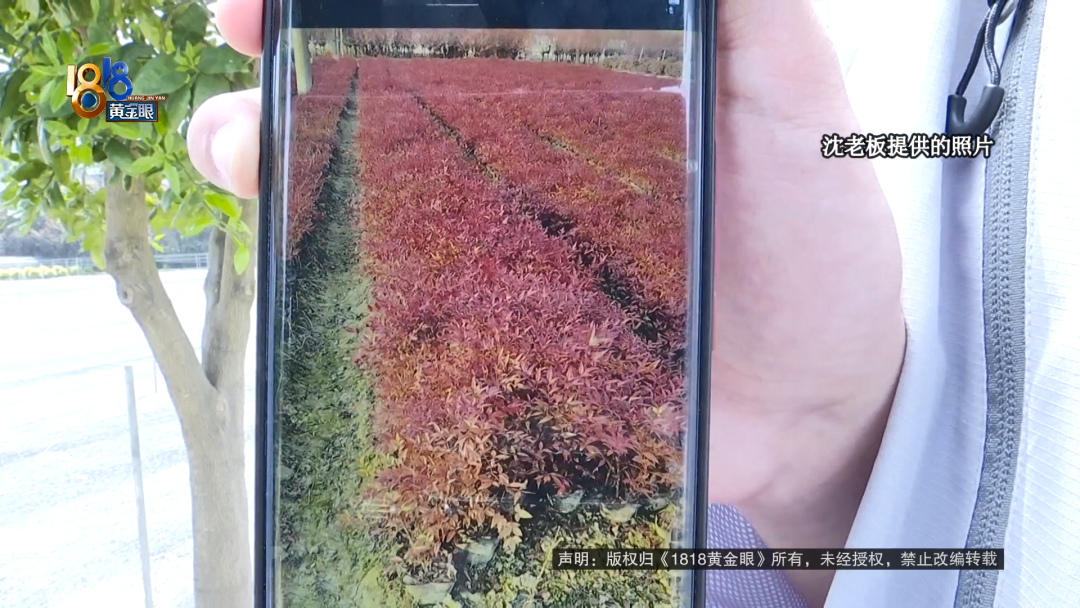 沈老板提供了照片和视频,说2月10号给顾客发过南天竹的照片,当时苗木叶子是鲜艳的红色。