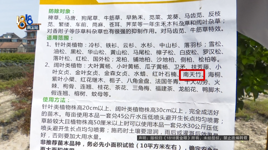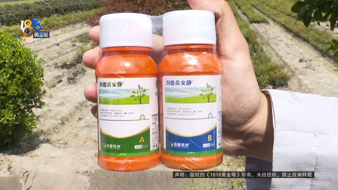 沈老板说去年2月份他从中栋国际花木城的“杭州聚星园林”买了一批“润德苗安静”除草剂。