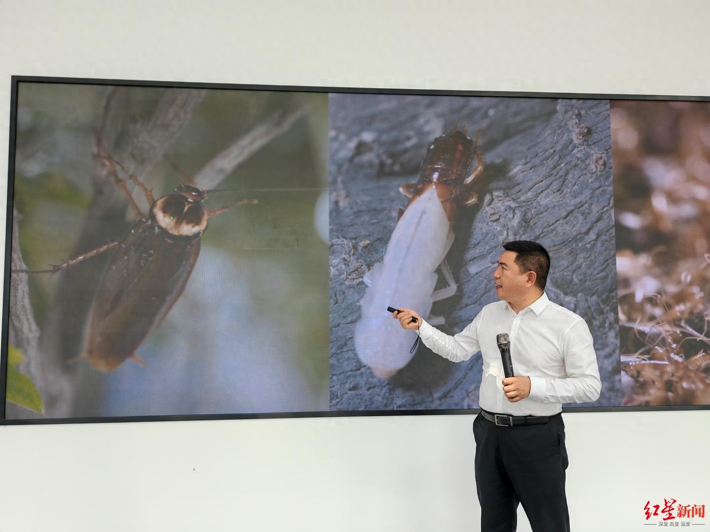 “我们日常在家中看到的蟑螂,大多是德国小蠊,它是臭名昭著的害虫。美洲大蠊与德国小蠊有明显区别:美洲大蠊体型更为庞大,在其头部还带有独特的白色蝶斑。”文建国告诉红星新闻记者,美洲大蠊有很强的断肢再生能力,“如果把腿或者触角剪掉,它们几天之内就能长出来,它们一生可以经历七八次蜕皮,具备极强的自我修复能力 。”