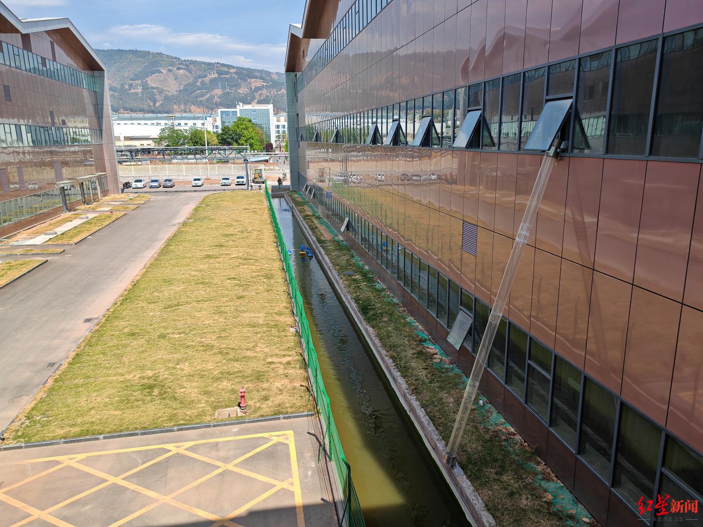 养殖车间外修建的水沟,里面养殖了很多鱼