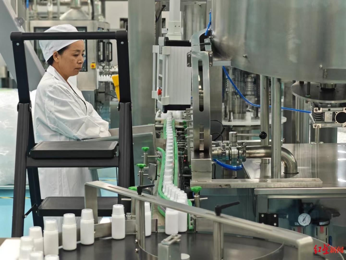 在提取车间,红星新闻记者看到,全车间采用三层结构,三层为投料和提取区,二层为浓缩区和中央控制区,一层为精制、纯化、干燥和药渣处理区。“这里涵盖了25条生产线,6700个关键控制点,所有管道加在一起总长度超过120公里。美洲大蠊在这里提取有效成分,液体就通过管道,进入药品灌装车间进行装瓶。”文建国介绍道,随着二期数字化智能工厂的建成,实现了生产线自动化率达到98%,显著提升了生产效率和产品质量。