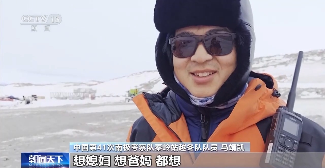 中国第41次南极考察队秦岭站越冬队队员 马靖凯:想媳妇,想爸妈,都想。我也是刚结婚,就跑出来了。也是做足了家里思想工作,就是为了争当首次越冬队员来的。我妈出门之前就嘱咐我,就是国家给你花了这么多钱,一定要好好干。