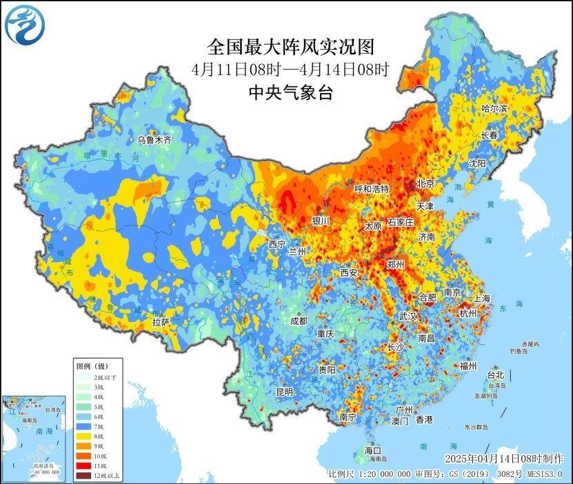 据中央气象台消息,受强冷空气影响,4月11日以来,我国中东部大部地区出现大风天气。此次大风过程具有影响范围广、持续时间长、突破极值站点多等特点。