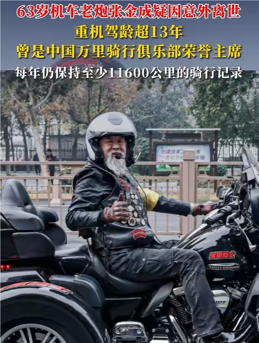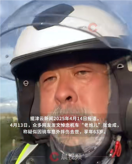 4月13日,众多网友发文悼念机车“老炮儿”张金成,称其疑似因骑车意外摔伤去世,享年63岁。