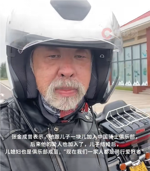 据了解,张金成曾是中国万里骑士俱乐部的荣誉主席,每年仍保持至少11600公里的骑行记录。张金成曾表示,他热爱机车运动,一家人都是骑行爱好者。