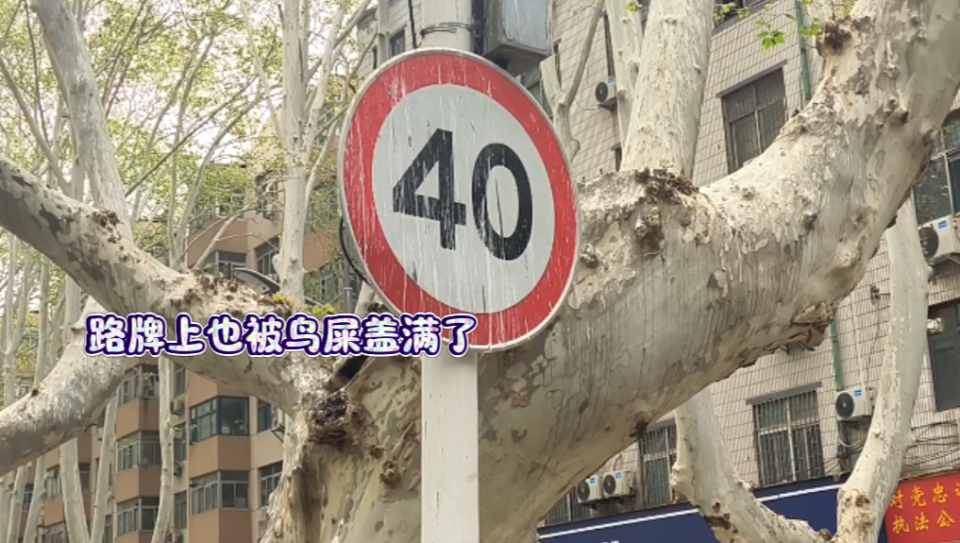 每年春夏时节,这条路的路面上、停放的车顶上到处都是白花花一片,路过的行人随时都有可能被鸟屎“袭击”。