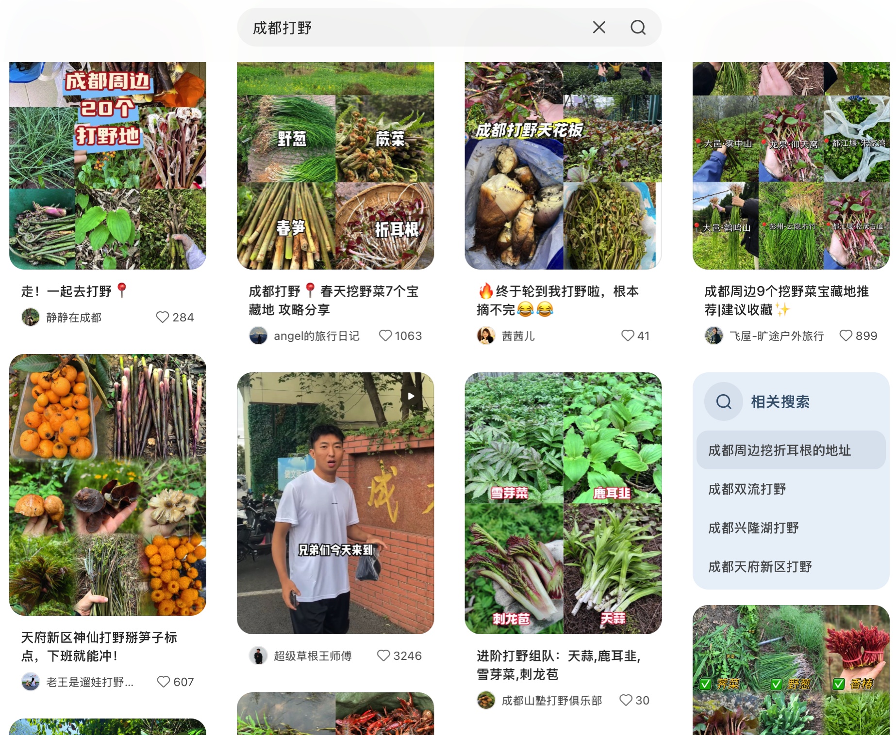 记者注意到,近两年“打野”活动在成都的社交媒体上走红,春季和秋季都是“打野”的最佳时间。网上各种自媒体“打野”攻略分享和视频层出不穷,但误挖村民种植的农作物的情况时常出现。