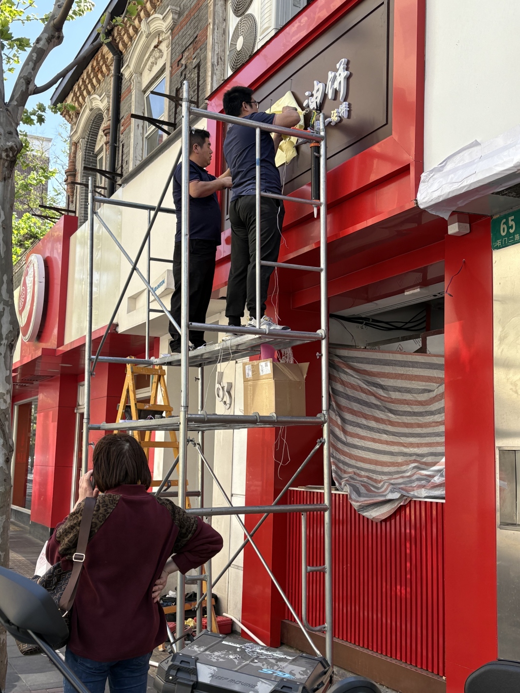 2025年4月14日下午,上海石门二路,阿大葱油饼的门店正在装修。澎湃新闻记者陈悦图