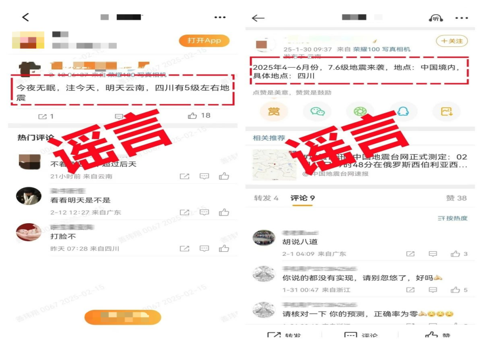 互联网不是法外之地,更不是谣言滋生的摇篮。对编造散布地震谣言扰乱公共秩序、造成恶劣社会影响的行为,公安机关将依法依规严肃查处。请广大网民擦亮眼睛,不造谣、不传谣、不信谣,共建清朗有序的网络空间。
