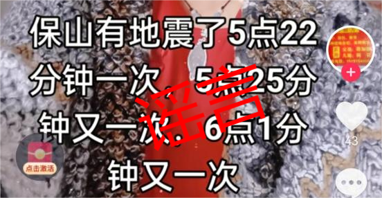 2025年4月3日,保山网警接网民举报,闵某某在4月3日6时39分在网络平台发布图文信息称保山分别在5:22、5:25、6:01分发生地震。经向政府有关部门核实,4月3日保山及周边地区没有发生地震。保山公安机关依法对闵某某作出行政处罚。
