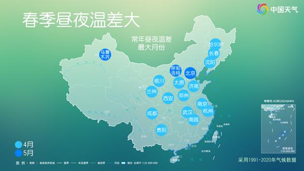 不过,由于夜间升温相对较慢,中东部大部昼夜温差将拉大,北方多地昼夜温差在15℃以上,白天夜间如同两季,公众请适时调整着装。气温偏高、降水偏少,华北、黄淮及西北地区东南部、西南地区等地森林火险气象等级较高,需注意防火。