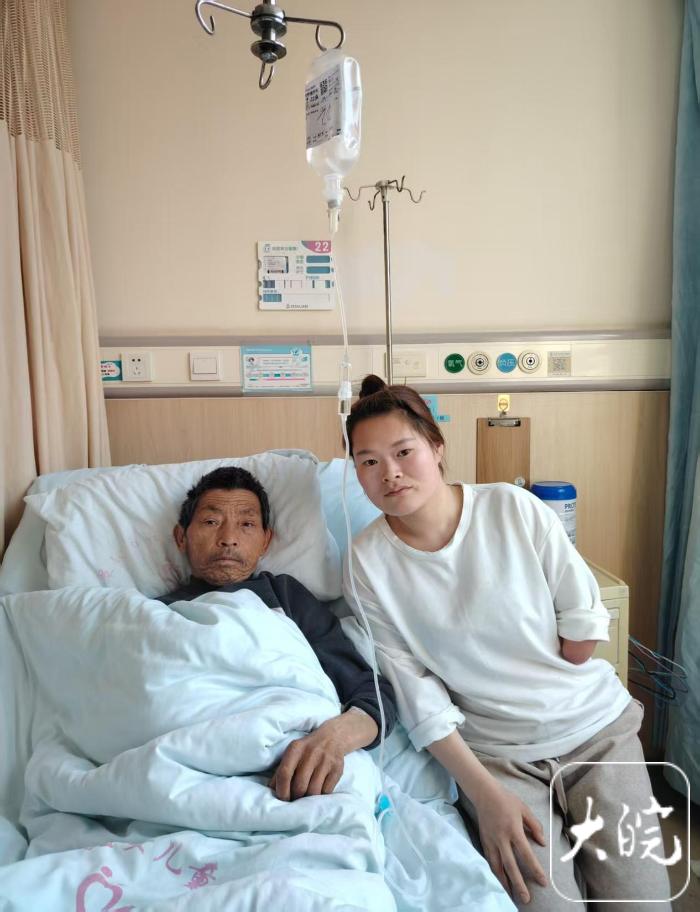 刘晴晴出嫁后,养父刘怀曾继续做着收废品的营生。今年2月21日,得知养父夜里突然吐血的消息后,刘晴晴第一时间联系亲戚把他送到医院。“到医院检查后,被确诊为肝细胞癌晚期。”刘晴晴说,这一消息对她来讲,无疑是晴天霹雳。“我婆婆是2019年去世的,我丈夫常年在外打工。平时,我在附近厂里打工挣钱养家,更方便照顾三个孩子和公公、养父。如今,养父重病,我只能辞去工作,日夜陪伴在他身边。”